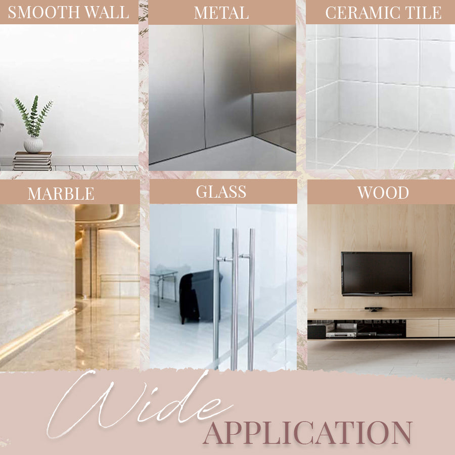 • Wide Application Can be applied to many surface such as ceramic tile, marble, glass, metal, smooth wall, and smooth wood!